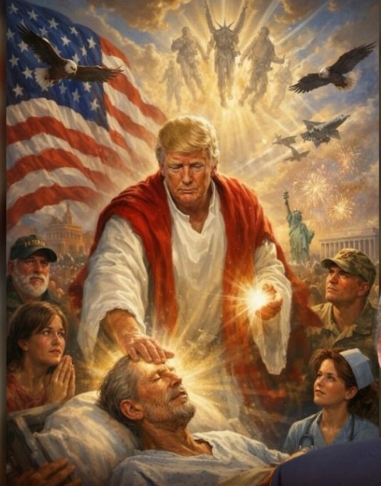 The image, posted on Trump’s social media platform Truth Social, depicts the former U.S. President in a symbolic, almost divine representation. The post has drawn sharp reactions across political, religious, and public spheres, with critics calling it provocative and inappropriate, while supporters argue it reflects political expression and satire.